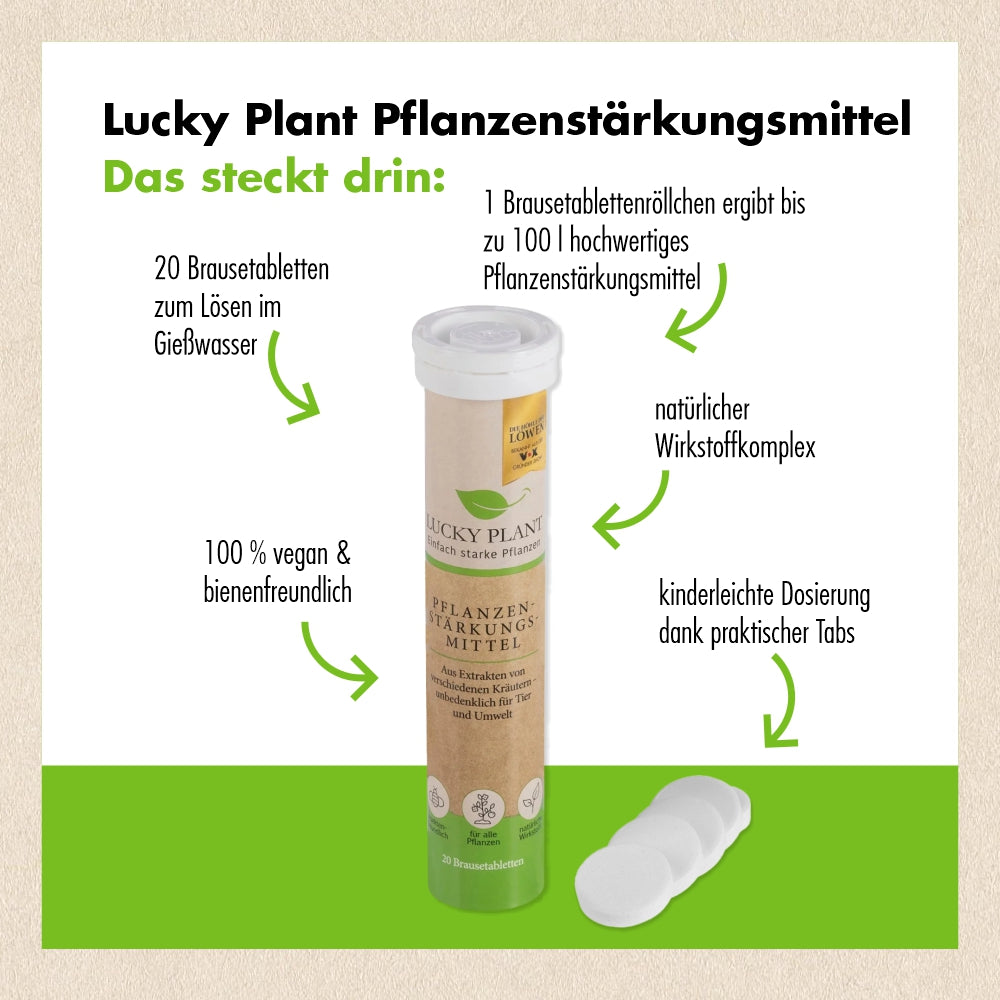 Das natürliche Pflanzenstärkungsmittel von "Lucky Plant" enthält verschiedene Kräuterextrakte und dient als ideale Nährstoff-Ergänzung für Pflanzen.